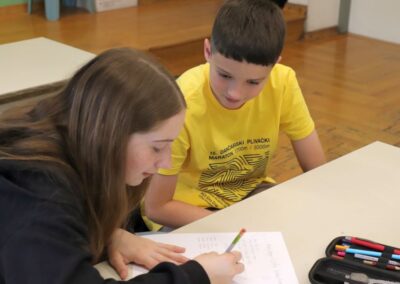 Ovogodišnja posebnost Dana BezVeze bila je druženje naših malih i velikih. Učenici viših razreda primili su svoje male kolege. Spojeni u nove razrede, grupe različitih uzrasta proveli su dan zajedno. Odgovornost velikih mogla se opipati, a ponos malenih jasno je bila vidljiva u očima. Družeći se kroz različite teme i sadržaje, zajedno smo se podsjetili što to znači biti odgovoran, voljan pomoći i pružiti svoje iskustvo i znanje mlađima. Kako je to kad se prisjetiš starih uspomena i osjećaja, te što sve zaboraviš putem. Što je to što te čini važnim i kako je dobar osjećaj kada znaš da ćeš nekoga naučiti malim, ali bitnim stvarima. Što to znači kada ti netko čuva leđa i osjećaš se sigurnim. Sve one sićušne stvari koje su nam toliko važne za rast i razvoj, te osjećaj zadovoljstva. Sve one koje često niti ne primjećujemo. Kada se usput i zabaviš, događaj postaje neprocjenjiv.