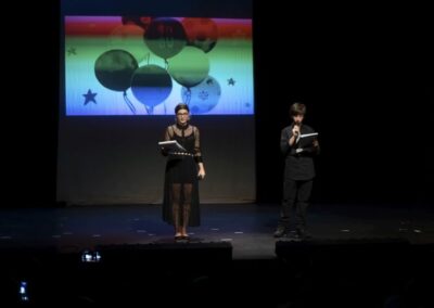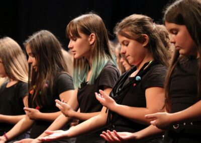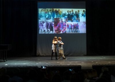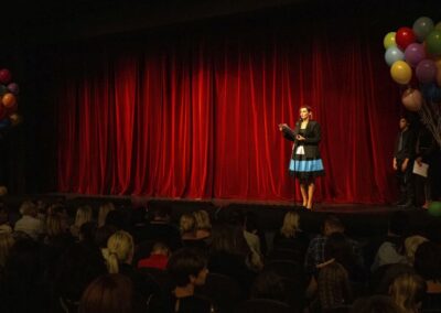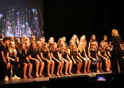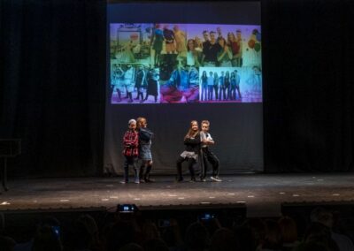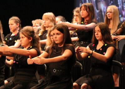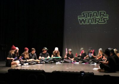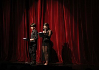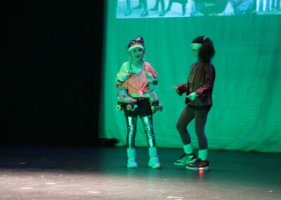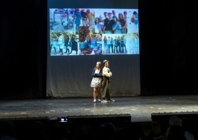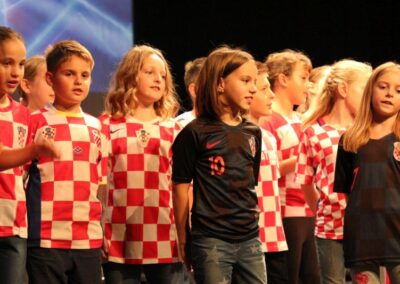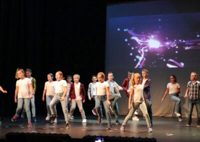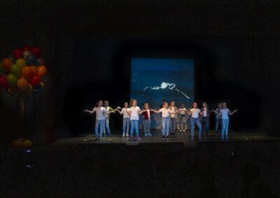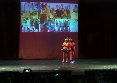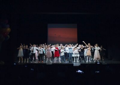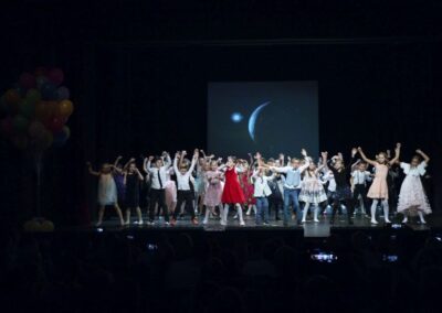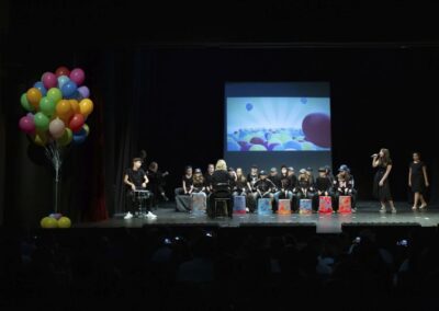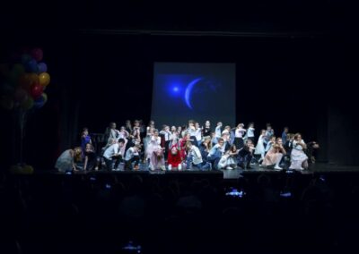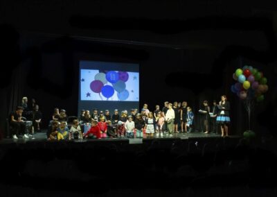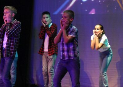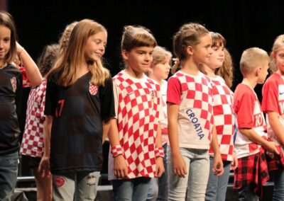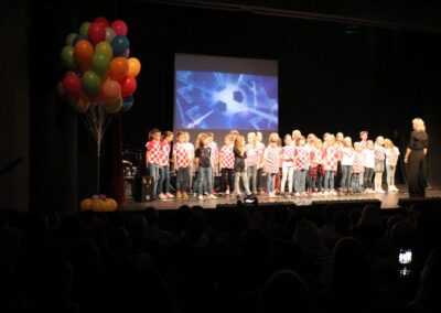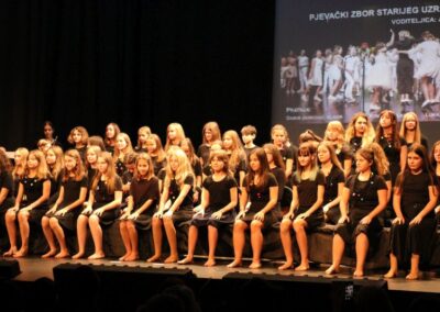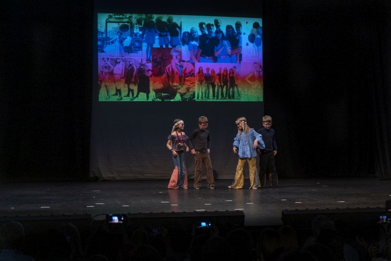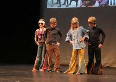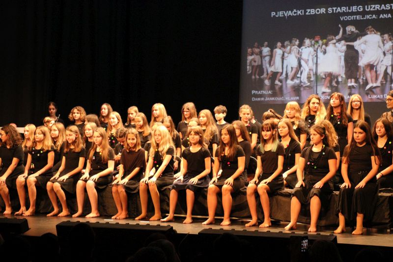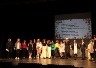 Publika je uživala putujući kroz vrijeme. Naši talentirani učenici proveli su nas putem vječnih hitova plešući, pjevajući i glumeći. Prisjetili smo se modnih stilova, neponovljivih glazbenih stihova, ritmova plesnih koraka. Svi talenti su zasjali na svjetlima pozornice!